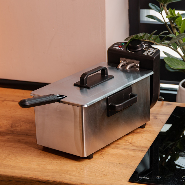 Фритюрница электрическая - это мощная и универсальная электрофритюрница, которая идеально подходит для приготовления хрустящей и вкусной пищи. Настольная фритюрница емкостью 5 литров позволяет готовить большие порции фри, чебуреков, пончиков, беляшей, курицы за один раз. Фритюрница оборудована мощным нагревательным элементом, который быстро нагревает масло до нужной температуры. Основные характеристики фритюрницы объем 3.5 литров; мощность 2000 Вт; рабочее напряжение 220-240 В; таймер 15 минут; частота 50/60 Гц. Преимущества электрофритюрницы Sokany Съемные нагревательные элементы упрощают процесс очистки и ухода за устройством. Функция регулятора температуры позволяет вам настроить температуру в соответствии с конкретными требованиями приготовления. Ножки, устойчивые к скольжению обеспечивают стабильность устройства во время эксплуатации. Съемная емкость для масла с антипригарным покрытием упрощает процесс очистки и поддерживает гигиеничность использования. Двойные фильтры фритюрницы контролируют запахи и пары масла, обеспечивая более комфортные условия приготовления. Фритюрница Sokany подойдет для фаст фуда, кафе или ресторана. Фритюрница промышленная с защитой от перегрева и автоматическим выключением сделает работу безопасной и удобной. Купить профессиональную фритюрницу можно с доставкой по всей Украине.