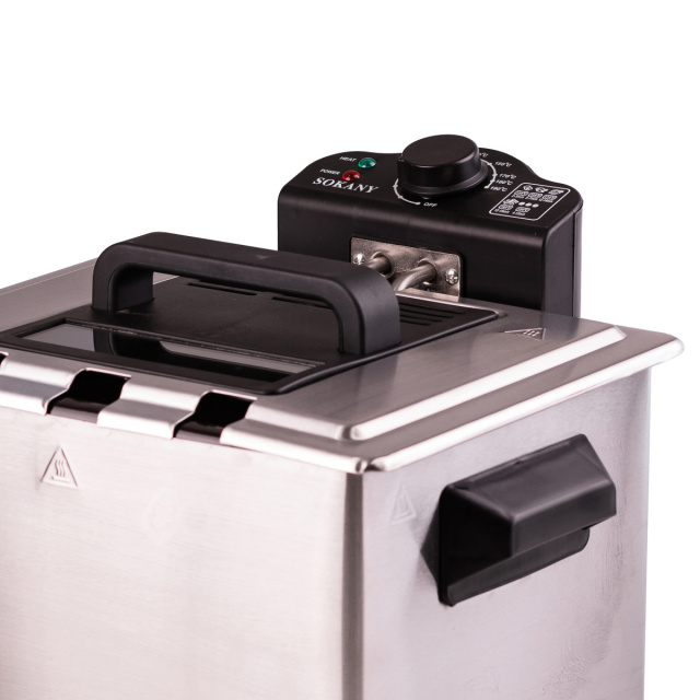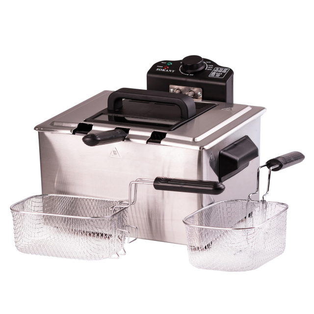 Фритюрница электрическая - это мощная и универсальная электрофритюрница, которая идеально подходит для приготовления хрустящей и вкусной пищи. Настольная фритюрница емкостью 5 литров позволяет готовить большие порции фри, чебуреков, пончиков, беляшей, курицы за один раз. Фритюрница оборудована мощным нагревательным элементом, который быстро нагревает масло до нужной температуры. Основные характеристики фритюрницы объем 5 литров; мощность 2100 Вт; рабочее напряжение 220-240 В; частота 50/60 Гц; 2 маленькие + 1 большая жарочные корзины. Позволяют приготавливать разные продукты одновременно. Преимущества электрофритюрницы Sokany Съемные нагревательные элементы упрощают процесс очистки и ухода за устройством. Функция регулятора температуры позволяет вам настроить температуру в соответствии с конкретными требованиями приготовления. Ножки, устойчивые к скольжению обеспечивают стабильность устройства во время эксплуатации. Окошко на крышке позволяет следить за процессом приготовления без необходимости открывать фритюрницу. Съемная емкость для масла с антипригарным покрытием упрощает процесс очистки и поддерживает гигиеничность использования. Двойные фильтры фритюрницы контролируют запахи и пары масла, обеспечивая более комфортные условия приготовления. Фритюрница Sokany подойдет для фаст фуда, кафе или ресторана. Фритюрница промышленная с защитой от перегрева и автоматическим выключением сделает работу безопасной и удобной. Купить профессиональную фритюрницу можно с доставкой по всей Украине