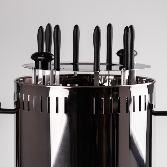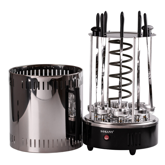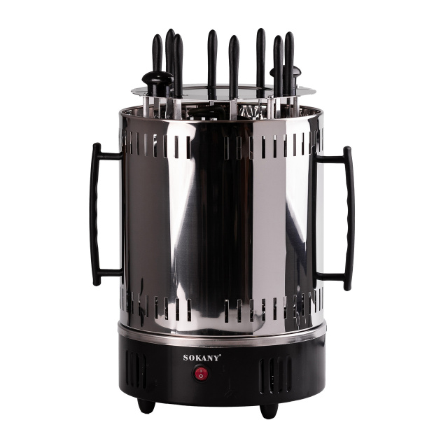 Электрошашлычница Sokany - это шашлычница для дома, предназначенная для удобного и быстрого приготовления ваших любимых шашлыков. Вертикальная конструкция с авто вращением с 12 оборотами в минуту, обеспечивает равномерное приготовление. Электрическая шашлычница изготовлена из нержавеющей стали. Основные характеристики электрошашлычницы авто вращение; вертикальное расположение шампуров; мощность 1500 Вт; время приготовления 20-40 минут; 8 шампуров. С шашлычницей Sokany можно готовить до 7-8 кг мяса, рыбы или овощей, что идеально подойдет для больших компаний. Автоматическая шашлычница Sokany - это отличный выбор для тех, кто ценит вкусные шашлыки с минимумом усилий. Купить электро шашлычницу можно с доставкой по всей Украине.