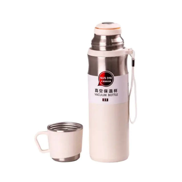Термос с чашкой 600 мл – это универсальный и практичный аксессуар, который идеально подойдет для любителей активного отдыха, путешественников и просто тех, кто хочет всегда иметь под рукой горячий или холодный напиток. Основные преимущества термоса Универсальность: можно использовать как для горячих, так и для холодных напитков. Практичность: компактная, легкая, удобно брать с собой в дорогу. Надежность: изготовлен из высококачественной нержавеющей стали, устойчив к коррозии, царапинам и ударам. Долговечность: прослужит вам долгие годы. Стильный дизайн: термос выглядит современно и стильно.