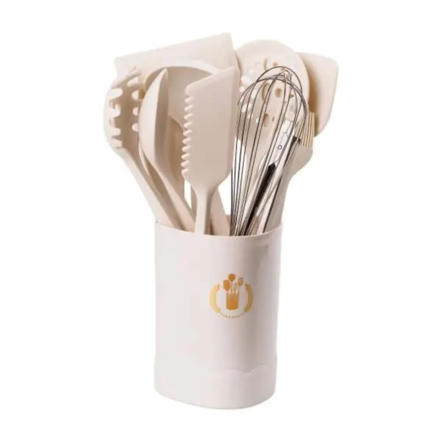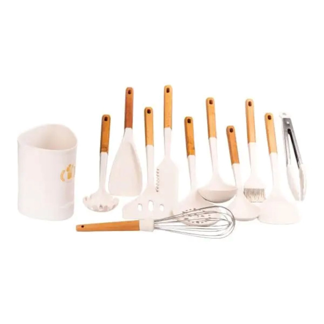 Набор кухонных принадлежностей на подставке включает 12 высококачественных аксессуаров деревянными ручками. Этот комплексный набор предоставляет все необходимые инструменты для приготовления блюд, сочетая функциональность с эстетикой. Включает ложки, лопатки, венчик, шумовку и другие важные аксессуары. Подставка обеспечивает организованное хранение и легкий доступ к инструментам, делая вашу кухню стильной и функциональной. Характеристики: Материал: силикон, дерево Количество предметов: 12 Длина приборов: 32 см Преимущества: Функциональность: включает все необходимые инструменты для приготовления пищи. Организация: удобная подставка для эффективного хранения и доступа к принадлежностям. Уход: Не мойте в посудомоечной машине. Храните принадлежности в сухом месте.
