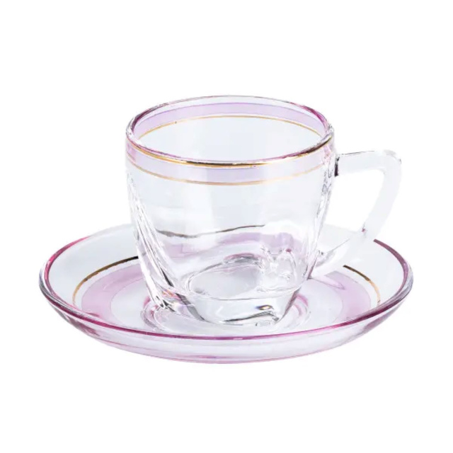 Чашки з блюдцем стеклянные прозрачные набор на 6 персон Розовый HP571