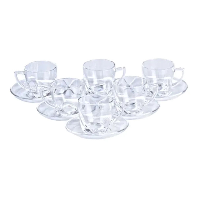 Этот изысканный набор из чашек и блюдец на 6 персон станет прекрасным дополнением к вашему столу. Каждая чашка имеет удобную ручку, что обеспечивает комфортное употребление любимого напитка. Изготовлен из высококачественного прозрачного стекла, набор не только привлекателен внешне, но и долговечен, а также легко моется в посудомоечной машине, что обеспечивает удобство в уходе. Характеристики: Высота чашек: 7 см Объем чашек: 200 мл Диаметр блюдца: 14 см Материал: прозрачное стекло Преимущества: Удобная ручка чашки для комфортного использования Высококачественное стекло, которое обеспечивает долговечность Блюдца достаточного размера для чашки и ложки, что подходит для сервировки закусок Уход: Мыть в посудомоечной машине или вручную, используя мягкие губки и неагрессивные моющие средства