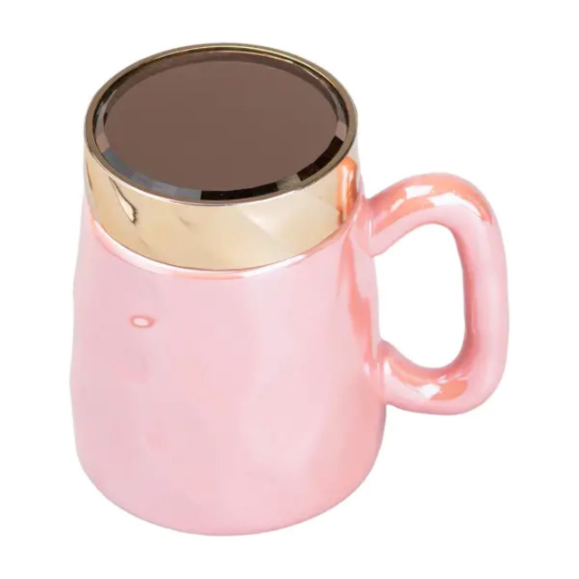Стильная чашка в зеркальной перламутровой глазури с крышкой - идеальный вариант для подарка, и для повседневного использования. Она неприхотлива в эксплуатации, отлично сохраняет тепло и подойдет как для офиса, так и для дома. Основные характеристики чашки Объем 450 мл; Высота 11.5 см; Диаметр 7.0 см. Основные преимущества чашки Сохранение тепла: фарфор прекрасно сохраняет тепло напитка, позволяя вам наслаждаться чаем или кофе дольше. Экологичность: фарфор – это натуральный и безопасный материал, не выделяющий вредных веществ. Универсальность: фарфоровые чашки подходят для горячих и холодных напитков. Практичность: фарфоровые чашки легко моются и не впитывают запахи. Долговечность: фарфоровые чашки при правильном уходе прослужат вам долгие годы.