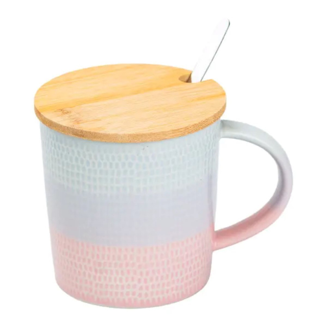 Чашка с бамбуковой крышкой и ложкой фарфоровая 350 мл Розовый HP7201P