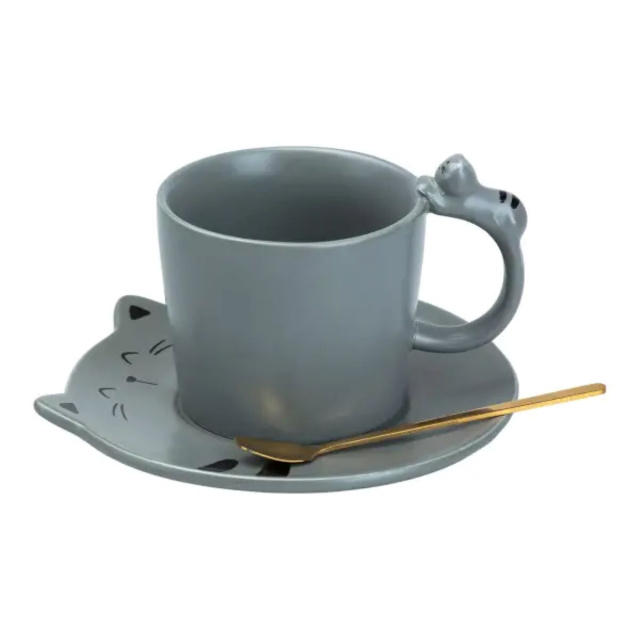 Чашка с блюдцем и ложкой фарфоровая 250 мл "Котик". Эта красивая фарфоровая чашка в виде Котика с блюдцем и ложкой однозначно станет прекрасным подарком как для взрослого, так и для ребенка! Она неприхотлива в эксплуатации, отлично сохраняет тепло и подойдет для горячих и холодных напитков. Основные характеристики чашки Объем 250 мл; Высота 8 см; Диаметр 8.5 см. Основные преимущества чашки Сохранение тепла: фарфор прекрасно сохраняет тепло напитка, позволяя вам наслаждаться чаем или кофе дольше. Экологичность: фарфор – это натуральный и безопасный материал, не выделяющий вредных веществ. Универсальность: фарфоровые чашки подходят для горячих и холодных напитков. Практичность: фарфоровые чашки легко моются и не впитывают запахи. Долговечность: фарфоровые чашки при правильном уходе прослужат вам долгие годы.