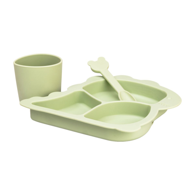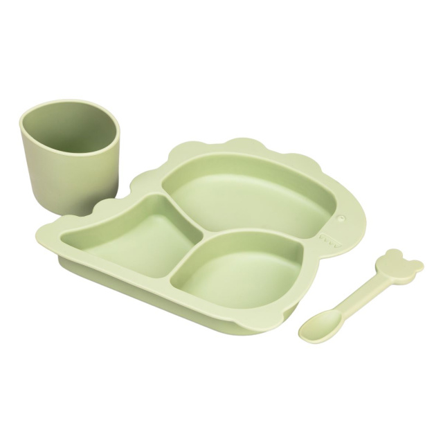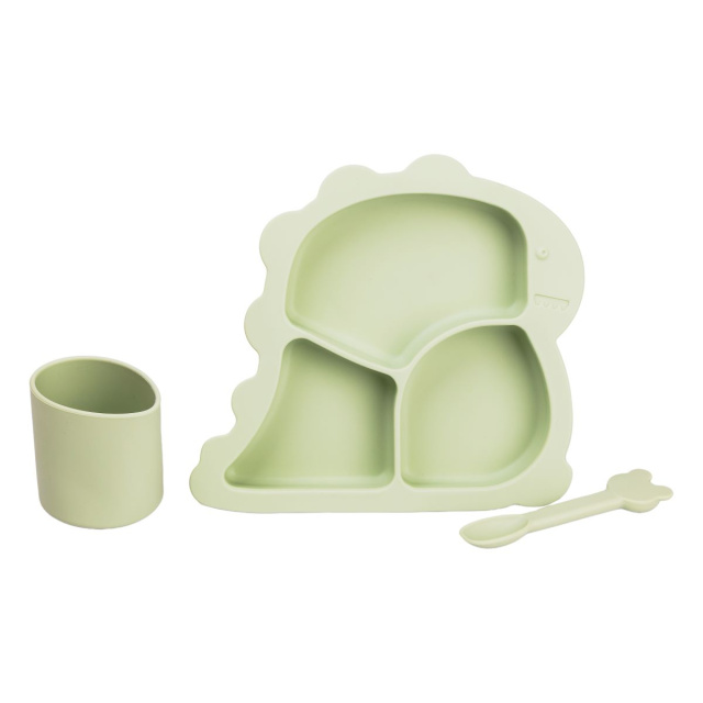 Набор силиконовой посуды для детей Динозавр на 3 предмета — это отличный выбор для первого прикорма. Этот практичный и безопасный набор посуды, изготовленный из пищевого силикона, станет отличным подарком для вашего малыша. Набор состоит из 3 предметов: тарелки с присоской, ложки и стакана. Силикон не бьется, не царапается, не деформируется и легко моется, что делает его идеальным для использования детьми. Тарелка имеет присоску, которая фиксирует ее на столе, а стакан удобно использовать для питья. Ложка имеет закругленные края для безопасности ребенка. Оригинальный дизайн и тарелка в форме динозавра понравятся вашему малышу, а практичность и безопасность набора сделают процесс кормления более комфортным и удобным. Преимущества: Безопасный для детей: изготовлен из нетоксичного пищевого силикона Не бьется и не царапается Устойчив к деформации Легко моется и подходит для посудомоечной машины Обратите внимание: Перед использованием рекомендуется простерилизовать посуду. Не используйте посуду в микроволновой печи.