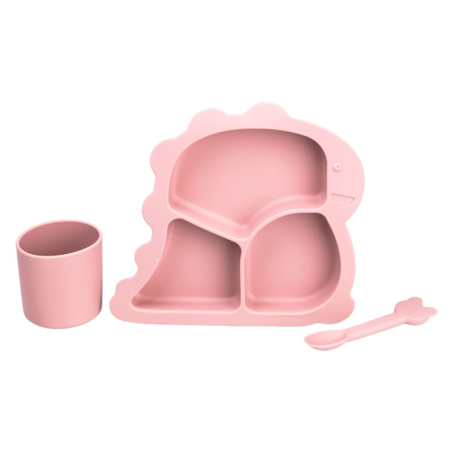 Набор силиконовой посуды для детей "Динозавр" в составе из трех предметов — идеальный выбор для первого прикорма. Этот удобный и безопасный набор, выполненный из пищевого силикона, станет замечательным подарком для вашего малыша. В комплект входят три предмета: тарелка с присоской, ложка и стакан. Силиконовые изделия не бьются, не царапаются и не деформируются, а также легко моются, что делает их идеальными для детей. Тарелка оснащена присоской, которая надежно фиксирует её на столе, стакан удобен для питья, а ложка имеет округлые края для дополнительной безопасности. Яркий дизайн с изображением динозавров обязательно понравится вашему ребенку, а практичность и безопасность набора сделают процесс кормления более комфортным и удобным. Преимущества: Безопасен для детей: изготовлен из нетоксичного пищевого силикона Не бьется и не царапается Устойчив к деформации Легко моется и подходит для мытья в посудомоечной машине Обратите внимание: Перед первым использованием рекомендуется стерилизовать посуду. Не используйте посуду в микроволновой печи.