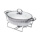 фарфоровая овальная мармитница объемом 1 литр – элегантный и функциональный аксессуар для вашей кухни. Изготовлена из высококачественного фарфора белого цвета с серебристым покрытием по краям, она выглядит изящно и стильно. Стеклянная крышка обеспечивает сохранение тепла и аромата блюд, позволяя наслаждаться идеально приготовленной едой. Характеристики: Размеры: 31×19×13 см Объем: 1 литр Материал: фарфор, стекло, нержавеющая сталь Достоинства: Хромированная металлическая подставка с подогревом поддерживает блюда теплыми в течение всего времени подачи. Эстетический дизайн придает изяществу и стилю сервировку стола. Уход: Рекомендуется использовать моющие средства Ручная мойка для сохранения вида фарфора и стекла