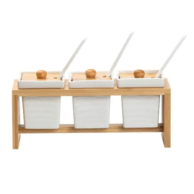 Обновите свою кухню с нашим стильным набором банок для сыпучих продуктов. Набор состоит из трех банок объемом 150 мл, изготовленных из высококачественной керамики, которая является экологически чистым материалом и обеспечивает надежную защиту от вредных бактерий. Бамбуковая подставка позволяет компактно разместить банки на столе или полке, а бамбуковые крышки плотно закрываются, сохраняя ваши продукты свежими. Лаконичный дизайн набора гармонично вписывается в любой кухонный интерьер, добавляя ему элегантности. Характеристики: Материал банок: Керамика Материал подставки: Бамбук Объем банок: 150 мл Преимущества: Экологически чистая керамика, защищающая от бактерий Плотно закрывающиеся бамбуковые крышки плотно закрываются Компактное хранение благодаря бамбуковой подставке Уход:Банки легко чистятся и могут мыться в посудомоечной машине. Бамбуковые части рекомендуется протирать мягкой тканью. Избегайте абразивных средств для сохранения первоначального вида.
