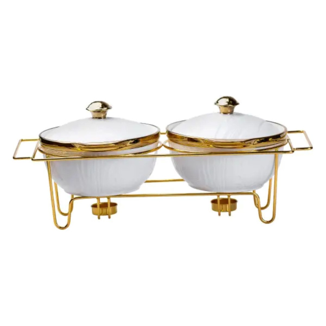фарфоровая круглая мармитница объемом 2 л со стеклянной крышкой и покрытием "золотой мрамор" станет настоящим украшением вашей кухни. Ее элегантный дизайн и практичные свойства делают ее идеальной для подачи еды на любом праздничном мероприятии или семейном ужине. Изготовленная из высококачественного фарфора с изящным покрытием "золотой мрамор", мармитница устойчива к царапинам, трещинам и выгоранию. Стеклянная крышка плотно прилегает, сохраняя тепло и свежесть пищи, а удобная ручка облегчает переноску. Характеристики: Размеры: 47*20*17 см Объем: 2 лМатериал: фарфор, стекло, нержавеющая сталь Преимущества: Двойные стенки мармитницы обеспечивают превосходную теплоизоляцию, благодаря чему ваши блюда будут оставаться горячими в течение нескольких часов. Покрытие "золотой мрамор" придает мармитнице элегантный и роскошный вид, подчеркивая изящество вашей сервировки. Круглая форма добавляет изящества и гармонично вписывается в интерьер. Уход: Рекомендуется ручная мойка с использованием мягких моющих средств, избегать резких перепадов температуры.