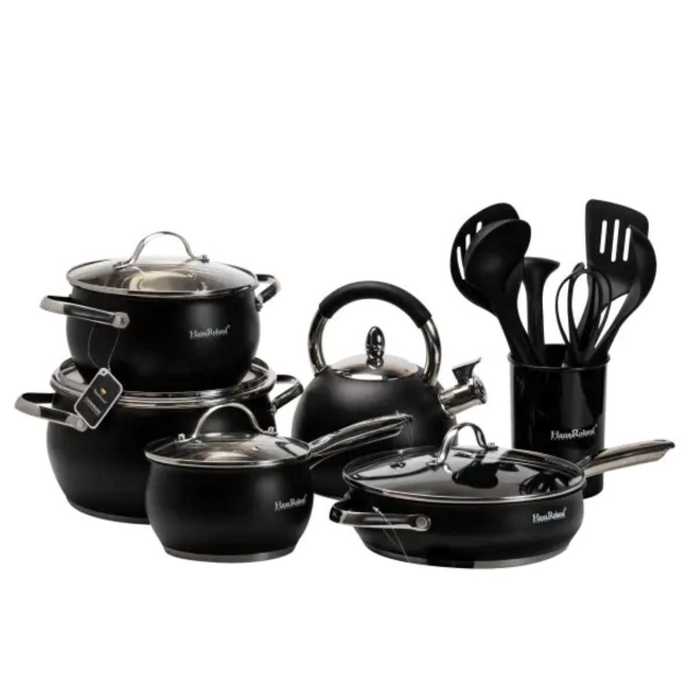 Расширенный набор кухонной посуды включает все необходимые элементы для приготовления разнообразных блюд. В состав набора входят: Три кастрюли разного размера с крышками: идеально подходят для приготовления супов, тушений и других блюд. Объем кастрюль - 6.1 л и 3.6 л, с диаметрами 24 см и 20 см соответственно. Чайник: имеет удобную ручку и быстро нагревается, что экономит время на кипячении воды. Объем чайника - 1.9 л, диаметр - 16 см. Сотейник с крышкой: объем 2.9 л и диаметр 24 см, подходит для приготовления соусов и тушеных блюд. Набор кухонных лопаток: включает лопатку, шумовку, половник и другие инструменты, изготовленные из прочного материала, устойчивого к высоким температурам. Подставка для лопаток: обеспечивает удобное хранение инструментов и порядок на кухне. Преимущества: Высококачественный материал (алюминий) обеспечивает равномерное распределение тепла и предотвращает пригорание пищи. Прозрачные крышки из жаростойкого стекла позволяют контролировать процесс приготовления без поднимания крышки. Антипригарное покрытие облегчает мытье посуды и предотвращает прилипание пищи. Подходит для всех типов плит, включая газовые, электрические, стеклокерамические и индукционные. Уход: Рекомендуется использовать мягкие губки или ткани для чистки, чтобы избежать царапин на антипригарном покрытии. Мыть все элементы набора после использования в теплой мыльной воде, за исключением частей, не подлежащих мытью в посудомоечной машине (в зависимости от инструкций производителя). Этот набор станет незаменимым помощником как для начинающих, так и для опытных кулинаров, делая приготовление пищи легким и приятным процессом.