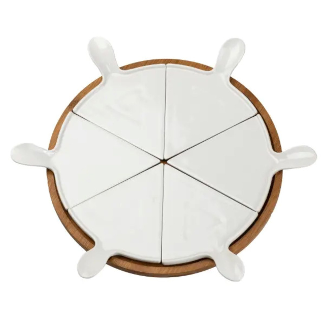 Тарілка для піци діаметром 28 см – чудовий варіант для сервірування столу. Виконане в строгому лаконічному дизайні, воно «впишеться» в будь-яку стилістику застілля, що дозволяє використовувати його для обідів у сімейному колі та урочистих заходів. Блюдо має обертову бамбукову підставку, керамічна тарілка дозволяє без проблем розділити піцу на 6 рівних частин для порційної подачі. Такий посуд ідеально підійде також для різних видів випічки, серед яких торти, відкриті і закриті пироги, кекси, запіканки та багато іншого.& lt;br> Блюдо виготовлено з якісних матеріалів, тарілку можна мити в посудомийній машині, а доглядати за бамбуковою підставкою нескладно. Досить після використання протерти її м'якою вологою тканиною без використання абразивних миючих засобів. Характеристики: Матеріал: кераміка Висота: 4 см Діаметр: 28 см