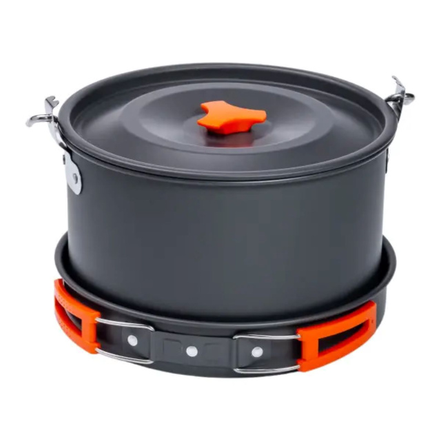 Этот набор посуды для кемпинга в сумке - идеальное решение для активного отдыха на природе. Изготовленный из прочного алюминия, он выдерживает длительное использование даже в самых экстремальных условиях. Комплект включает все необходимые предметы для приготовления пищи во время кемпинга, походов или рыбалки. Благодаря складным ручкам, посуда легко транспортируется, занимая минимум места, а специальная конструкция по принципу неваляшки позволяет компактно сложить ее в сумку, весом всего 1 кг. Основные преимущества набора походного снаряжения: Комплектность: Включает все необходимые предметы для приготовления пищи на открытом огне. Удобство транспортировки: Легко складывается по принципу матрешки, занимая минимум места. Складывающаяся ручка: Обеспечивает сохранение тепла и удобное складывание внутрь котелка. Прочность и долговечность: Изготовленная из алюминия, посуда рассчитана на длительное использование. Легкость ухода за ней: Посуда легко моется в воде даже в условиях полевого лагеря. Основные характеристики: Кастрюля со складной ручкой: диаметр 21 см высота 9 см Сковорода со складной ручкой: диаметр 22 высота 4 см Заварочный чайник: диаметр 18 см высота 8 см