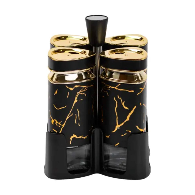 Комплект, изготовленный из пластика и стекла, включает четыре банки для специй и удобную подставку с ручками. Банки из стекла не впитывают запахи, что позволяет сохранять специи свежими и вкусными. Этот комплект для специй станет эффектным дополнением к вашей кухне, ведь подставка надежно удерживает емкости, предотвращая их выскальзывание, и придает кухне компактный и аккуратный вид. Характеристики и преимущества Размер: 11,5 х 11,5 х 16 см Объем контейнеров: 120 мл Материал контейнеров: стекло и пластик Материал подставки: пластик Простота в использовании с акцентом на внимание к деталям Меры безопасности Для поддержания длительного использования рекомендуется мыть банки вручную, избегая абразивных чистящих средств. Не оставляйте комплект на прямом солнце, чтобы избежать деформации пластика.