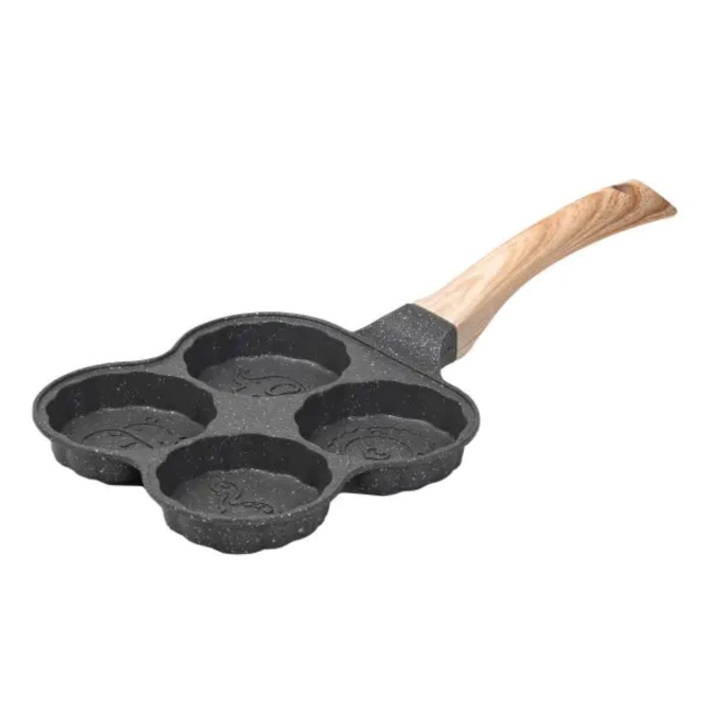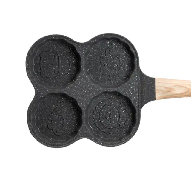Сковорода для оладий или панкейков - это отличный выбор для приготовления вкусных блюд в форме зверей. Изготовленная из алюминия с антипригарным покрытием, сковорода поделена на 4 круга, что позволяет создавать веселые и аппетитные порции. Антипригарное покрытие предотвращает пригорание, а уникальная конструкция дна обеспечивает отличную теплопроводность и равномерное распределение температуры по всей поверхности. Эта сковорода сделает приготовление оладий и панкейков не только простым, но и веселым! Рекомендации использования сковороды: Рекомендуется готовить на малом или среднем огне. Используйте силиконовые или деревянные столовые приборы, чтобы защитить поверхность от царапин. Категорически не рекомендуется использовать металлические ложки и кухонные лопатки. Чтобы предотвратить повреждение, следует мыть сковороду только после полного остывания, не использовать жесткие мочалки, щетки, абразивные пасты и порошки для чистки, агрессивные вещества. Основные характеристики сковороды: размер сковороды 19.5×19.5×2.5 см; высота сковороды 2.4 см; объем одной секции 120 мл; толщина стенок 3 мм; материал ручки - бакелит; антипригарное покрытие. Преимущества сковороды: сковорода подходит для газовых и электрических плит; не вступает в реакцию с пищевыми продуктами; одновременно можно приготовить 4 панкейка, блина или яйца.