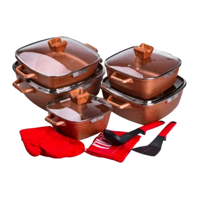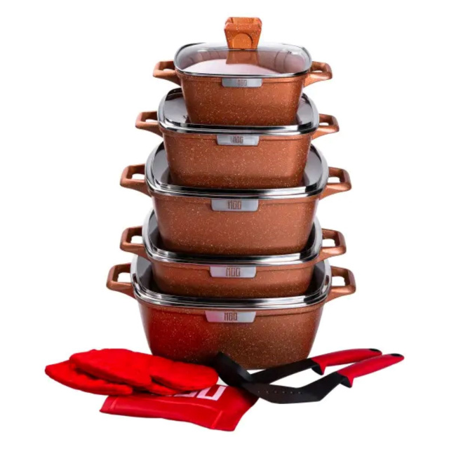Набор квадратных кастрюль с крышками и толстым дном обеспечивает равномерное распределение тепла и эффективное приготовление пищи. Каждая кастрюля оснащена крышкой из прочного жаропрочного стекла и пароотводом для уменьшения испарения и сохранения тепла. Это делает приготовление пищи еще более удобным и эффективным. Основные характеристики набора Кастрюля объемом 2,8 л Диаметр 20 см Высота кастрюли без крышки 9,5 см Высота кастрюли с крышкой 14,5 см Кастрюля объемом 4,5 л Диаметр 24 см Высота кастрюли без крышки 10,6 см Высота кастрюли с крышкой 15,6 см Кастрюля объемом 4,6 л. Диаметр 28 см Высота кастрюли без крышки 7,6 см Высота кастрюли с крышкой 12,6 см Кастрюля объемом 7 л. Диаметр 28 см Высота кастрюли без крышки 11,8 см Высота кастрюли с крышкой 16,8 см Кастрюля на 10 л Диаметр 32 см Высота кастрюли без крышки 13 см Высота кастрюли с крышкой 18 см. Набор совместим со всеми типами плит, включая индукционные, газовые и электрические. Алюминиевые кастрюли - надежный помощник в приготовлении вкусной и здоровой пищи для всей семьи.