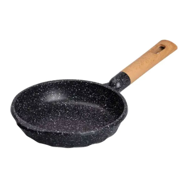 Круглая алюминиевая сковорода с антипригарным покрытием и толстым дном для идеальной теплоотдачи. Алюминиевая сковорода с антипригарным покрытием станет незаменимым помощником на кухне. Удобная ручка с антипригарным покрытием защитит ваши руки от ожогов. Уникальная конструкция дна обеспечивает отличную теплопроводность и равномерное распределение температуры по всей поверхности. Основные характеристики сковороды Объем 1 литр Высота 4,6 см; Толщина дна 5 мм. Преимущества сковороды Подходит для газовых, электрических и индукционных плит; Безопасное антипригарное покрытие, не содержащее вредных соединений; Мраморное покрытие, предотвращающее прилипание пищи и равномерно передающее тепло; Эргономичная ручка, которая не нагревается во время приготовления пищи. Меры предосторожности. Перед первым использованием вымойте сковороду в теплой воде с мягким моющим средством и губкой и вытрите насухо. После полного высыхания протрите антипригарное покрытие небольшим количеством растительного масла. Используйте силиконовые или деревянные столовые приборы, чтобы защитить поверхность от царапин. Категорически не рекомендуется использовать металлические ложки или лопатки. Чтобы избежать повреждений, мойте сковороду после полного остывания. Не используйте жесткие губки, щетки, абразивные пасты, чистящие порошки и агрессивные вещества. Эта сковорода сочетает в себе высокую функциональность и стильный дизайн.