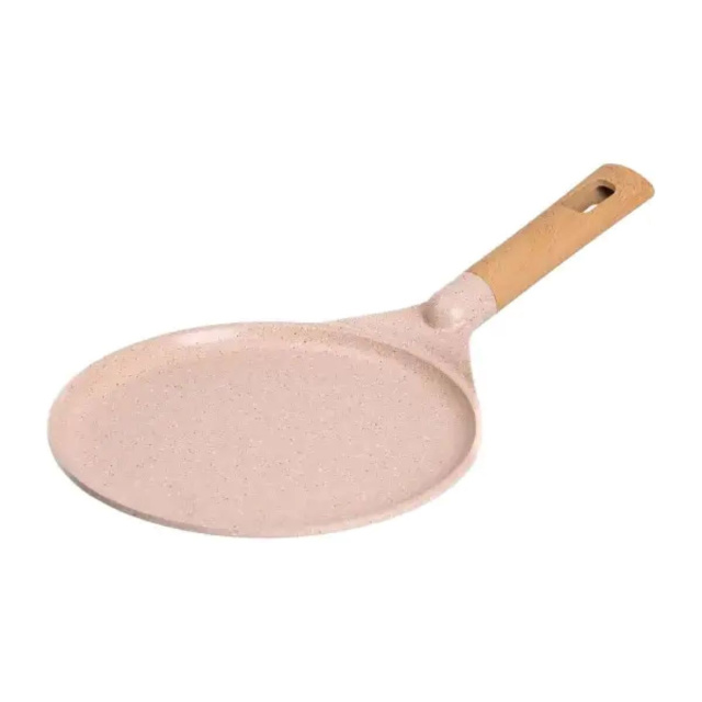 Алюминиевая сковорода с антипригарным покрытием станет незаменимым помощником на кухне. Она имеет толстое дно для идеального распределения тепла. Удобная ручка с антипригарным покрытием защитит ваши руки от ожогов. Уникальная конструкция дна обеспечивает отличную теплопроводность и равномерное распределение температуры по всей поверхности. Основные характеристики сковороды Диаметр: 24 см Толщина дна: 5 мм Материал: алюминий с мраморным антипригарным покрытием Тип плиты: газовая, индукционная, электрическая Преимущества сковороды Подходит для газовых, электрических и индукционных плит; Безопасное антипригарное покрытие, не содержащее вредных соединений; Мраморное покрытие, которое предотвращает прилипание пищи и равномерно передает тепло; Эргономичная ручка, которая не нагревается во время приготовления пищи. Меры предосторожности Перед первым использованием вымойте сковороду в теплой воде с мягким моющим средством и губкой и вытрите насухо. После полного высыхания протрите антипригарное покрытие небольшим количеством растительного масла. Используйте силиконовые или деревянные столовые приборы, чтобы защитить поверхность от царапин. Категорически не рекомендуется использовать металлические ложки или лопатки. Во избежание повреждений мойте сковороду после полного остывания. Не используйте жесткие губки, щетки, абразивные пасты, чистящие порошки и агрессивные вещества. Эта сковорода сочетает в себе высокую функциональность и стильный дизайн.