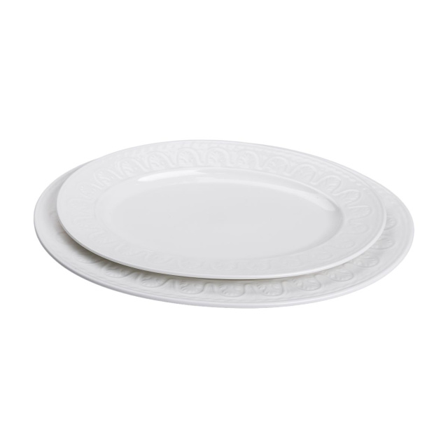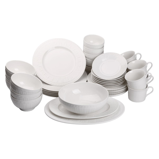 Столовый сервиз на 6 персон сочетает в себе стильный дизайн и качество. Он станет вашим верным помощником в сервировке стола как для повседневных трапез, так и для праздничных вечеров. Состав набора посуды 6 подставных тарелок Ø 26 см; 6 пиал Ø 14 см; 6 обеденных тарелок Ø 21 см; 6 маленьких салатников Ø 11 см; 1 большой салатник Ø 22 см; 1 овальное блюдо Ø 35 см 1 овальное блюдо Ø 30 см 6 чашек с блюдцами по 430 мл. Основные преимущества сервиза Сервиз подходит как для повседневного использования, так и для праздничных застолий. фарфор – это прочный и износостойкий материал, который прослужит вам долгие годы. фарфор не содержит вредных веществ и безопасна для здоровья. Набор посуды можно мыть в посудомоечной машине. Сервиз сочетает в себе элегантность и функциональность, что делает его отличным выбором для ежедневного использования или подарка для настоящих ценителей кулинарии и эстетики. Купить столовый сервиз можно с доставкой по всей Украине.