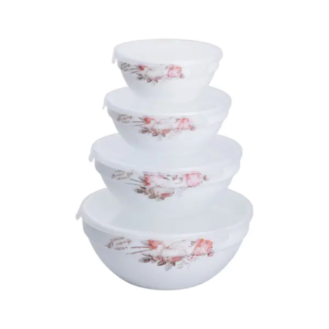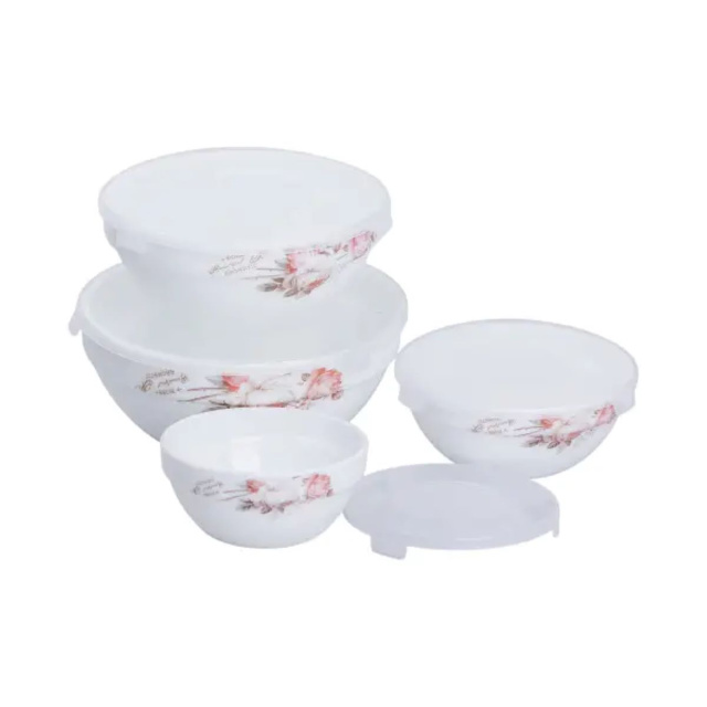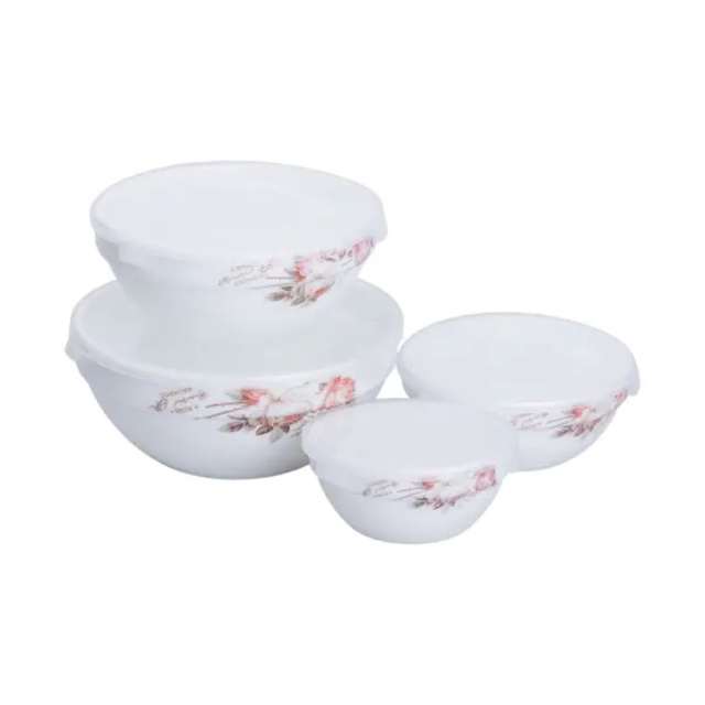 Набор фарфоровый пищевых контейнеров станет не только надежным помощником на кухне, но и украшением вашего дома. Набор включает в себя четыре миски различного объема, которые идеально подходят для многих кухонных задач. Каждый контейнер оснащен крышкой, что позволяет использовать их для хранения продуктов. Материалы высокого качества — фарфор, и полиэтиленовые крышки, обеспечивают долговечность и безопасность использования. Характеристики пищевых контейнеров Контейнер 0.25 литра диаметр 10 см; высота 4.5 см. Контейнер 0.35 литра диаметр 12.5 см; высота 5 см. Контейнер 0.6 литра диаметр 15 см; высота 6 см. Контейнер 1.1 литр диаметр 17.5 см; высота 7 см. Набор подойдет к любому интерьеру и станет идеальным подарком для любителей кулинарии. фарфор обеспечивает равномерный нагрев и легкость в уходе. Миски можно мыть как вручную теплой водой без использования абразивных материалов, так и в посудомоечной машине, что значительно упрощает процесс уборки после приготовления пищи.