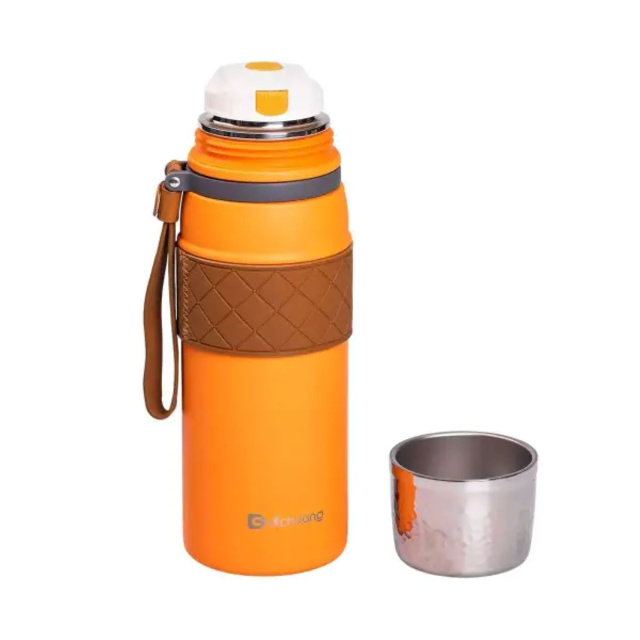Термос 700 мл изготовлен из высококачественной нержавеющей стали, что делает его крепким, долговечным и устойчивым к коррозии. Благодаря двойным стенкам с вакуумной изоляцией термос способен сохранять тепло в течение 12 часов, а холод – в течение 24 часов. Основные особенности термоса Термос оснащен удобной крышкой с кнопочным механизмом, что позволяет легко открывать и закрывать термос одной рукой. Внутри крышки имеется герметичная силиконовая прокладка для предотвращения протекания. В комплект входит ремешок, удобный для переноски и фиксации термоса на сумке или рюкзаке. Основные характеристики термоса объем 700 мл; высота 25 см; диаметр 7 см; материал - нержавеющая сталь; сохранение тепла до 12 часов. Термос – это универсальный и практичный аксессуар, который идеально подойдет для любителей активного отдыха, путешественников и просто тех, кто хочет всегда иметь под рукой горячий или холодный напиток.