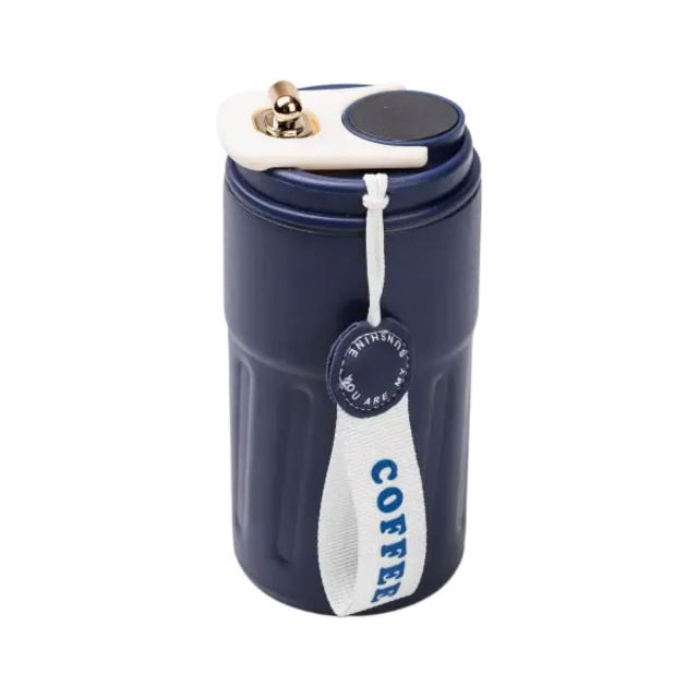 Термокружка 500 мл – это практичный и удобный аксессуар, который позволит вам наслаждаться любимым напитком, будь то горячий кофе, ароматный чай или освежающий сок, в любом месте и в любое время. Внутренняя колба изготовлена из высококачественной нержавеющей стали - этот материал является безопасным для здоровья, не накапливает запахи и не влияет на вкус напитка. Основные характеристики объем 500 мл; высота 17 см; диаметр 6.5 см. Основные преимущества Термокружка с вакуумной изоляцией способна сохранять температуру напитка в течение нескольких часов. В комплект входит текстильный ремешок с надписью, удобный для переноски и фиксации термокружки на сумке или рюкзаке. Крышка термокружки плотно закрывается, что защищает напиток от пролития. Термокружка незаменима в дороге, в спорт зале, на прогулках и пикниках. Она прекрасно удерживает тепло или холод, сохраняя температуру напитков. Вы сможете долго лакомиться горячим ароматным чаем или идеально ледяным лимонадом.