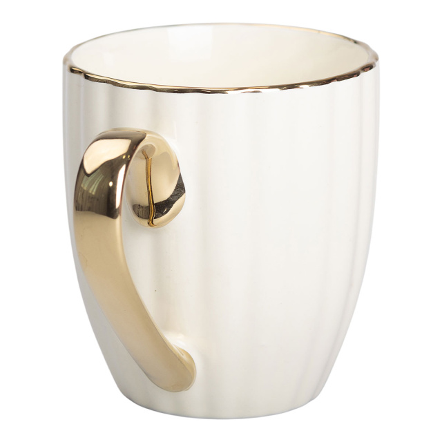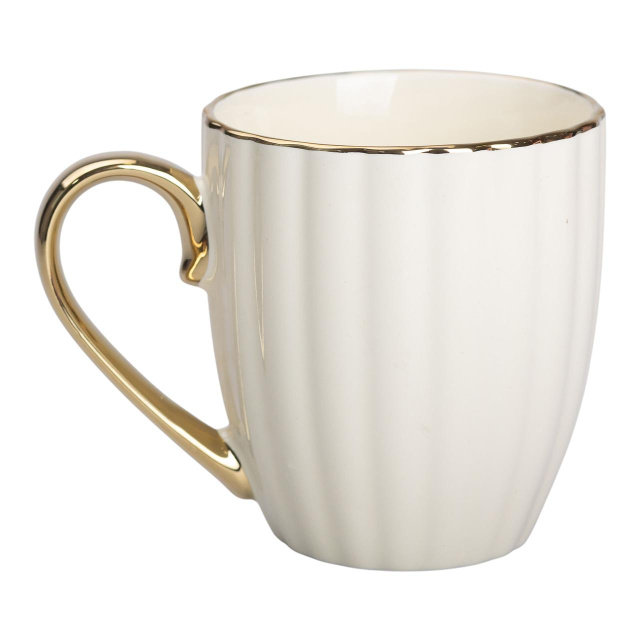 Кружка фарфоровая с золотым ободком и золотой ручкой 420 (мл) Бежевая RX-N240629BE