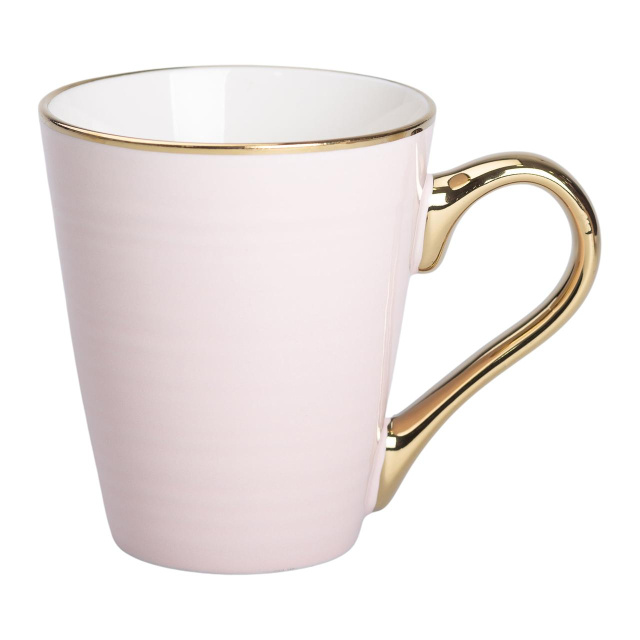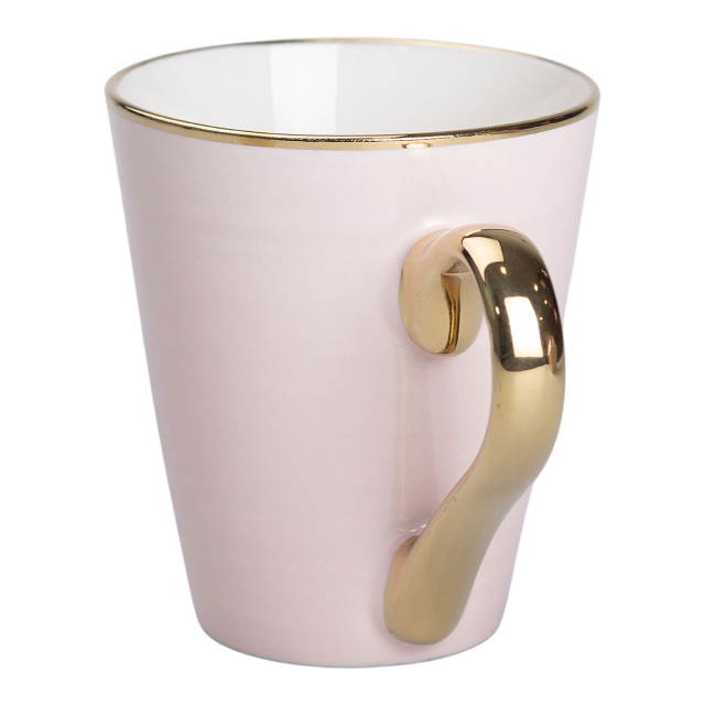 Кружка фарфоровая с золотым ободком и позолоченной ручкой 320 (мл) Розовая RX-N240624P