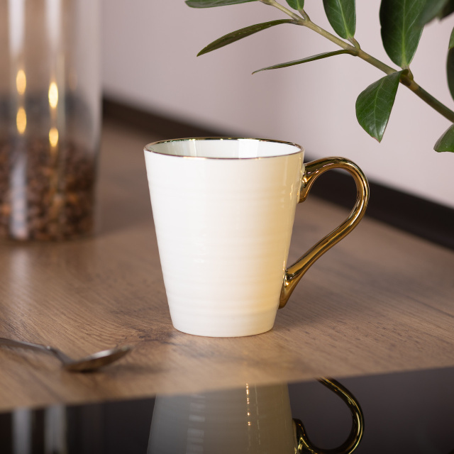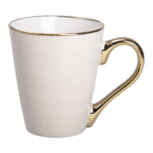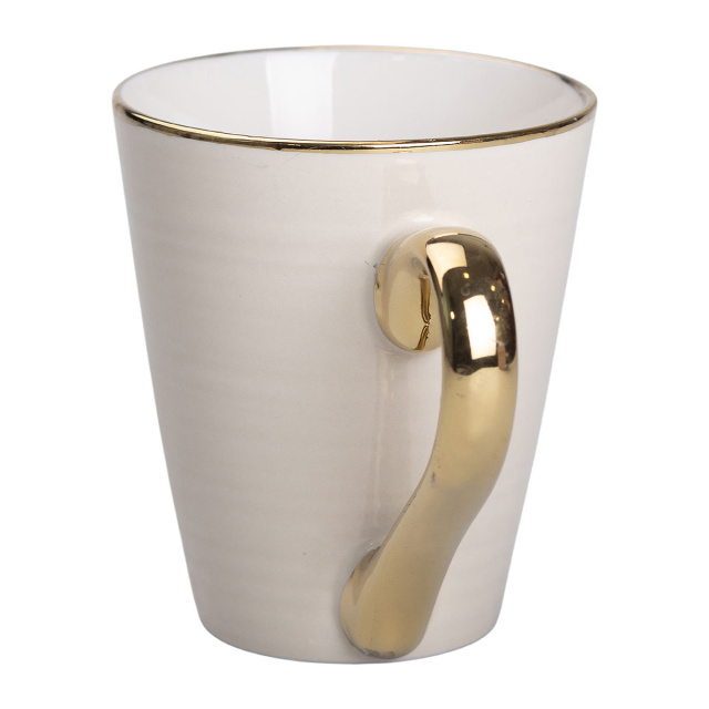 Кружка фарфоровая с золотым ободком и позолоченной ручкой 320 (мл) Бежевая RX-N240624BE