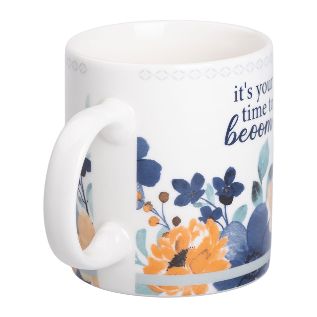 Кружка фарфоровая с цветочным принтом 400 (мл) для чая и кофе Белая RX-N240139W