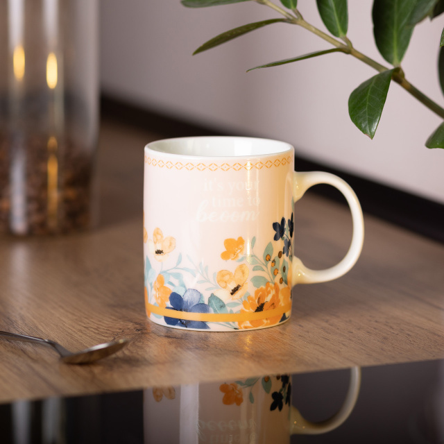 Кружка фарфоровая с цветочным принтом 400 (мл) для чая и кофе RX-N240139CR