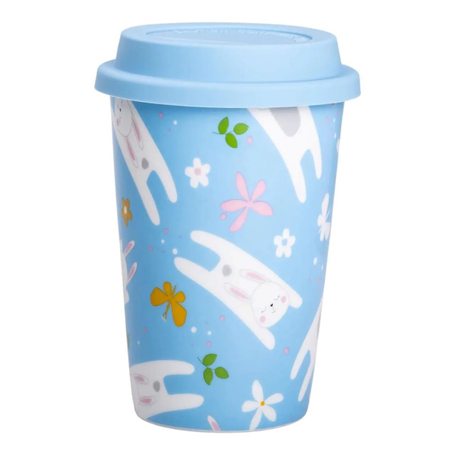Фарфоровый стакан с силиконовой крышкой и отверстием для трубочки 420 мл Голубой RX-N240546BL