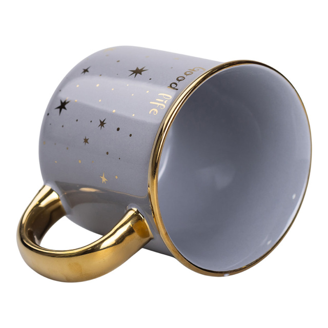 фарфоровая чашка объемом 320 мл с золотым ободком и золотой ручкой - это элегантный и стильный аксессуар для вашего чаепития. Золотой ободок и ручка придают чашке роскошный вид. Она станет прекрасным дополнением к праздничным моментам или особым обедам, добавляя изысканности вашему столу. Основные характеристики чашки объем 320 мл; высота 8.5 см; верхний диаметр 8.5 см; нижний диаметр 8 см. Основные преимущества чашки фарфор прекрасно сохраняет тепло напитка, позволяя вам наслаждаться чаем или кофе дольше. фарфор – это натуральный и безопасный материал, не выделяющий вредных веществ. Чашки подходят для горячих и холодных напитков. фарфоровые чашки при правильном уходе прослужат вам долгие годы. Чашка имеет компактный объем, что позволяет наслаждаться любимыми напитками в комфортном количестве, а ее удобная форма делает процесс питья приятным и комфортным. Изготовленная из качественного фарфора, она сохраняет тепло напитков, позволяя наслаждаться ими дольше. Благодаря роскошному дизайну, эта чашка станет отличным подарком для близких или коллег, добавляя элегантности в любую обстановку.