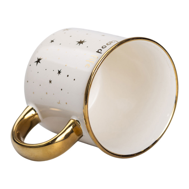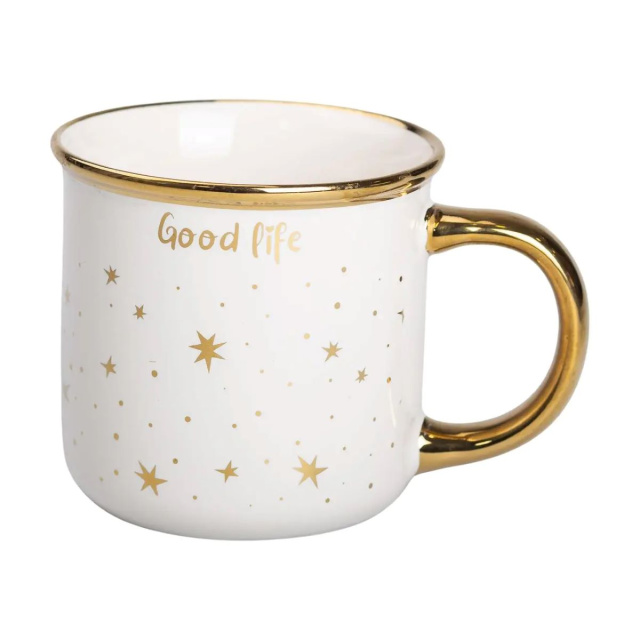 Чашка фарфоровая с золотым ободком и позолоченной ручкой 320 (мл) Good life Белая RX-N231506W