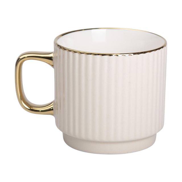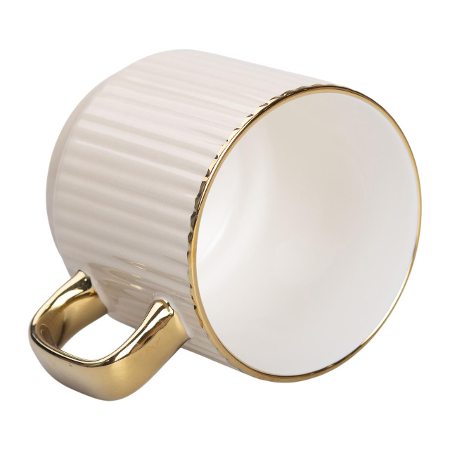 Чашка фарфоровая с золотым ободком и золотой ручкой 300 (мл) Бежевая RX-N231129BE