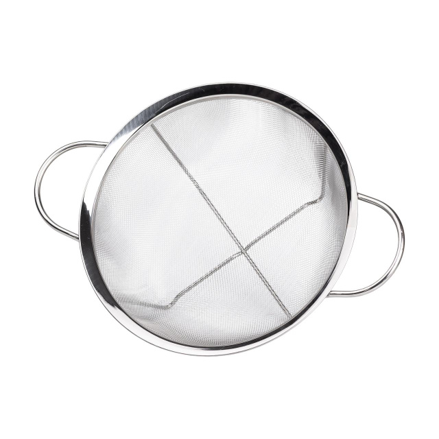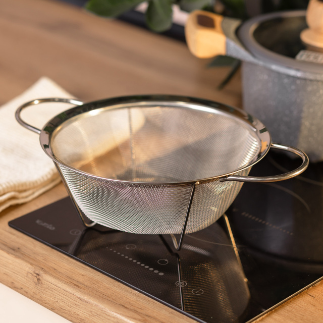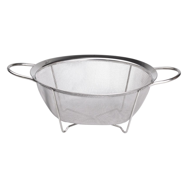Дуршлаг с двумя ручками станет незаменимым помощником на кухне. Благодаря мелкопористой сетке он идеально подходит для процеживания, промывки и просеивания различных продуктов, обеспечивая максимальную эффективность в приготовлении пищи. Эргономичная форма удобна в использовании, а оптимальный объем позволяет комфортно работать с большим количеством продуктов. Основные характеристики: Материал: нержавеющая сталь Размер дуршлага: 31.5х22х9 см Диаметр: 22 см Дуршлаг изготовлен из нержавеющей стали, что обеспечивает устойчивость к коррозии и простоту ухода. Прекрасный выбор для мытья овощей, процеживание пасты или других кулинарных задач. Благодаря компактным размерам и мелкопористой сетке, диаметром 22 см, этот дуршлаг станет незаменимым инструментом на любой кухне.