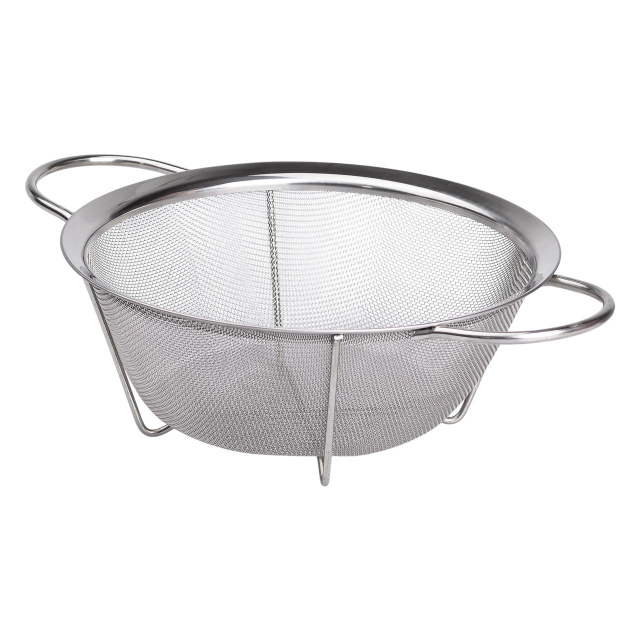 Дуршлаг с двумя ручками станет незаменимым помощником на кухне. Благодаря мелкопористой сетке он идеально подходит для процеживания, промывки и просеивания различных продуктов, обеспечивая максимальную эффективность в приготовлении пищи. Эргономичная форма удобна в использовании, а оптимальный объем позволяет комфортно работать с большим количеством продуктов. Основные характеристики: Материал: нержавеющая сталь Размер дуршлага: 33.5х25х9.5 см Диаметр: 25 см Дуршлаг изготовлен из нержавеющей стали, что обеспечивает устойчивость к коррозии и простоту ухода. Прекрасный выбор для мытья овощей, процеживание пасты или других кулинарных задач. Благодаря компактным размерам и мелкопористой сетке, диаметром 25 см, этот дуршлаг станет незаменимым инструментом на любой кухне.