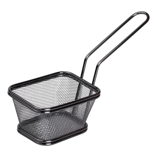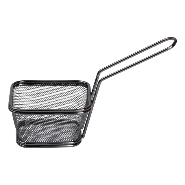 Стильная сервировочная корзина для фри и снеков станет незаменимым аксессуаром для оригинальной подачи любимых закусок. Изготовлена из нержавеющей стали с гальваническим покрытием, он совмещает изысканный вид с прочностью и долговечностью. Компактный размер и удобная форма позволяют подавать картофель фри, чипсы или другие закуски. Основные характеристики: Материал: нержавеющая сталь; Размер: 10.5х9х5.5 см; Высота с ручкой: 13 см; Глубина: 5 см; Толщина проволоки: 0.8 мм. Корзина имеет оптимальные размеры 10.5×9×5.5 см, что делает ее универсальной как для домашнего использования, так и для заведений питания. Гальваническое покрытие защищает поверхность износа и обеспечивает устойчивость к воздействию влаги, сохраняя презентабельный вид даже после длительного использования. Благодаря легкому уходу и оригинальному дизайну эта корзина станет ярким акцентом на вашем столе, добавляя нотку современности и эстетики в сервировку блюд.