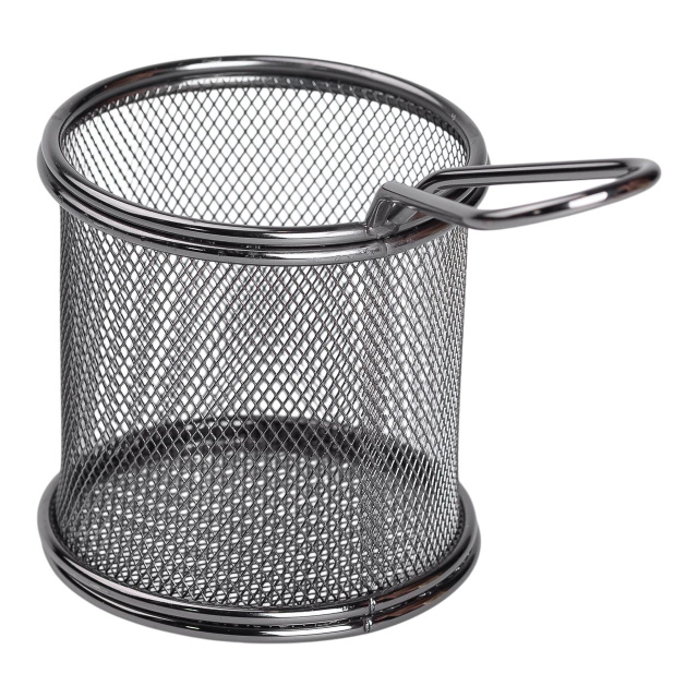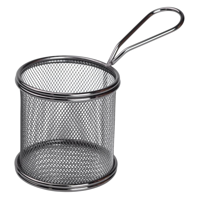 Оригинальная корзина для подачи снеков станет стильным акцентом вашего стола. Изготовлена из высококачественной нержавеющей стали с гальваническим покрытием, она сочетает современный вид с долговечностью. Компактный размер позволяет удобно подавать порционные закуски, сохраняя аппетитный вид. Основные характеристики: Материал: нержавеющая сталь; Размер: 9×9×9 см; Высота с ручкой: 12 см; Глубина: 8 см; Толщина проволоки: 0.5 мм. Благодаря своему дизайну и прочной конструкции корзина подходит для подачи картофеля фри, чипсов, хлебных палочек или других легких блюд. Металлический каркас обеспечивает легкость и стабильность, а покрытие гарантирует устойчивость к воздействию влаги и износу. Простота в уходе и возможность использования корзины в домашних условиях или для сервировки в заведениях делают ее универсальным решением.