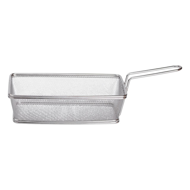 Стильная сервировочная корзина для фри и снеков станет незаменимым аксессуаром для оригинальной подачи любимых закусок. Изготовлена из нержавеющей стали, он совмещает изысканный вид с прочностью и долговечностью. Компактный размер и удобная форма позволяют подавать картофель фри, чипсы или другие закуски. Основные характеристики: Материал: нержавеющая сталь; Размер: 21х11.5х5.5 см; Высота с ручкой: 9.5 см; Глубина: 5 см; Толщина проволоки: 0.5 мм. Корзина имеет оптимальные размеры 21×11.5×5.5 см, что делает ее универсальной как для домашнего использования, так и для заведений питания. Гальваническое покрытие защищает поверхность износа и обеспечивает устойчивость к воздействию влаги, сохраняя презентабельный вид даже после длительного использования. Благодаря легкому уходу и оригинальному дизайну эта корзина станет ярким акцентом на вашем столе, добавляя нотку современности и эстетики в сервировку блюд.