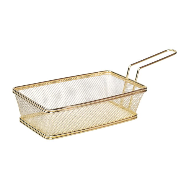Корзина сервировочная 21×11.5×5.5 см для подачи картофеля фри и снеков с ручкой Золотая HP-19-11-G