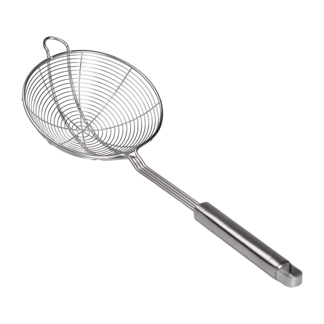 Шумовка с диаметром 16 см станет надежным помощником на кухне для сцеживания жидкостей, снятия пены и других кулинарных задач. Благодаря проволочной конструкции и изготовлению из высококачественной нержавеющей стали она обеспечивает прочность, долговечность и стойкость к коррозии. Основные характеристики: Материал: нержавеющая сталь; Размер: 43х16х11.54 см; Диаметр: 16 см; Глубина: 5 см. Шумовка легко очищается и подходит для работы с горячими продуктами, что придает удобство в приготовлении блюд. Компактные размеры позволяют использовать ее в посуде разного диаметра. Эта шумовка идеально подходит для домашней кухни или профессионального использования, добавляя удобства и эффективности к ежедневным кулинарным процессам.