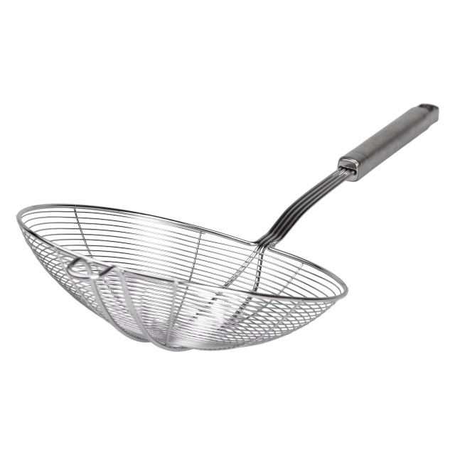 Шумовка с диаметром 13.5 см станет надежным помощником на кухне для сцеживания жидкостей, снятия пены и других кулинарных задач. Благодаря проволочной конструкции и изготовлению из высококачественной нержавеющей стали она обеспечивает прочность, долговечность и стойкость к коррозии. Основные характеристики: Материал: нержавеющая сталь; Размер: 39х13.5х8 см; Диаметр: 13.5 см; Глубина: 4 см. Шумовка легко очищается и подходит для работы с горячими продуктами, что придает удобство в приготовлении блюд. Компактные размеры позволяют использовать ее в посуде разного диаметра. Эта шумовка идеально подходит для домашней кухни или профессионального использования, добавляя удобства и эффективности к ежедневным кулинарным процессам.