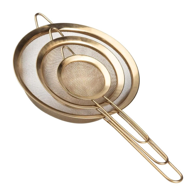 Набор ситечек из нержавеющей стали – универсальное и практичное дополнение кухонной утвари. Аксессуары имеют разный диаметр и могут использоваться для разнообразных процессов, в числе которых просеивание муки и других мелкодисперсных продуктов, протирание фруктовых и овощных пюре, соусов, заваривания чая. Основные характеристики набора ситечек размер большого сита 39×20×7 см; размер среднего сита 30×14×5.5 см; размер маленького ситечка 22×8.5×3 см; материал - нержавеющая сталь. Ситечки изготовлены из нержавеющей стали, легко моются под проточной водой и не занимают много места на кухне. Для удобства использования предусмотрена длинная ручка и широкий ободок с петелькой для подвешивания.