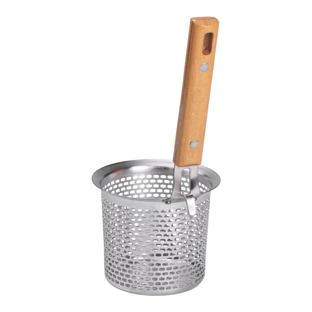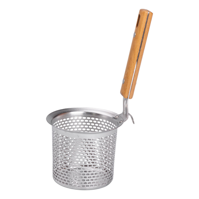 Сито из нержавеющей стали для фритюра и варки макарон – универсальный аксессуар для домашней и профессиональной кухни, который имеет множество вариантов применения. Глубокое сито из нержавеющей стали с маленькими круглыми отверстиями идеально подходит для процеживания жареных и приготовленных ингредиентов, таких как макароны, пельмени или овощи в темпуре. Также подходит для быстрого приготовления и бланширования продуктов прямо в ситечке. Основные характеристики: размер 10х10х8 см. высота с ручкой 22 см. глубина 7.5 см. вес 120 г. тип поверхности - перфорированный металл. Сито подходит для быстрого приготовления продуктов на пару или в горячем масле мясных, овощных, рыбных закусок, и позволяет практически сразу избавиться от лишнего жира.