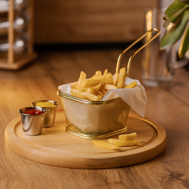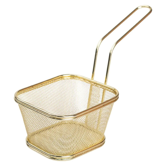 Стильная сервировочная корзина для фри и снеков станет незаменимым аксессуаром для оригинальной подачи любимых закусок. Изготовлена из нержавеющей стали с гальваническим покрытием, он совмещает изысканный вид с прочностью и долговечностью. Компактный размер и удобная форма позволяют подавать картофель фри, чипсы или другие закуски в элегантной манере. Основные характеристики: Материал: нержавеющая сталь; Размер: 13×11×7 см; Высота с ручкой: 21 см; Глубина: 7 см; Толщина проволоки: 0.8 мм. Корзина имеет оптимальные размеры 13×11×7 см, что делает ее универсальной как для домашнего использования, так и для заведений питания. Гальваническое покрытие защищает поверхность износа и обеспечивает устойчивость к воздействию влаги, сохраняя презентабельный вид даже после длительного использования. Благодаря легкому уходу и оригинальному дизайну эта корзина станет ярким акцентом на вашем столе, добавляя нотку современности и эстетики в сервировку блюд.