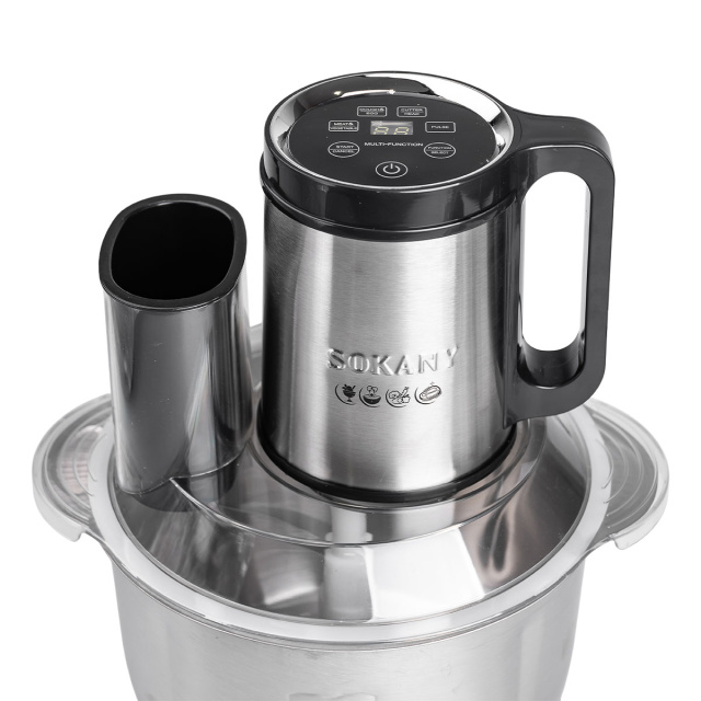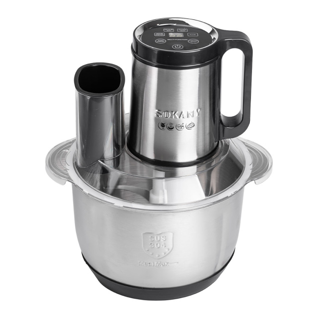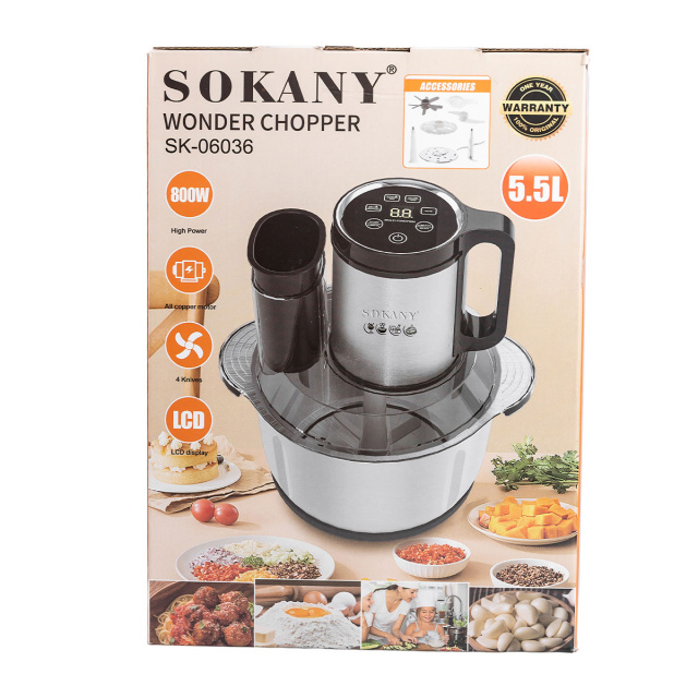 Чоппер Sokany SK-06036 - это универсальный кухонный помощник, который значительно облегчит процесс приготовления пищи. Благодаря высокой мощности и острым ножам из нержавеющей стали, он обеспечивает быстрое и качественное измельчение овощей, фруктов, мяса и других ингредиентов. Большая вместимость чаши позволяет готовить как небольшие порции, так и блюда для всей семьи. Основные характеристики: Размер 26х23х30 см; Мощность: 800 Вт; Объем чаши: 3,5 литра; Количество лезвий: 4 штуки; Материал лезвий: нержавеющая сталь; Материал чаши: нержавеющая сталь. Эргономичный дизайн и простота использования делают Sokany SK-06036 идеальным выбором для ежедневного применения. Благодаря компактным размерам, чоппер легко хранить даже в небольшой кухне. Модель SK-06036 также отличается простотой ухода: все съемные части легко очищаются под проточной водой или в посудомоечной машине. Это устройство, которое сочетает в себе эффективность, надежность и эстетику, делая его незаменимым для кулинарных экспериментов.