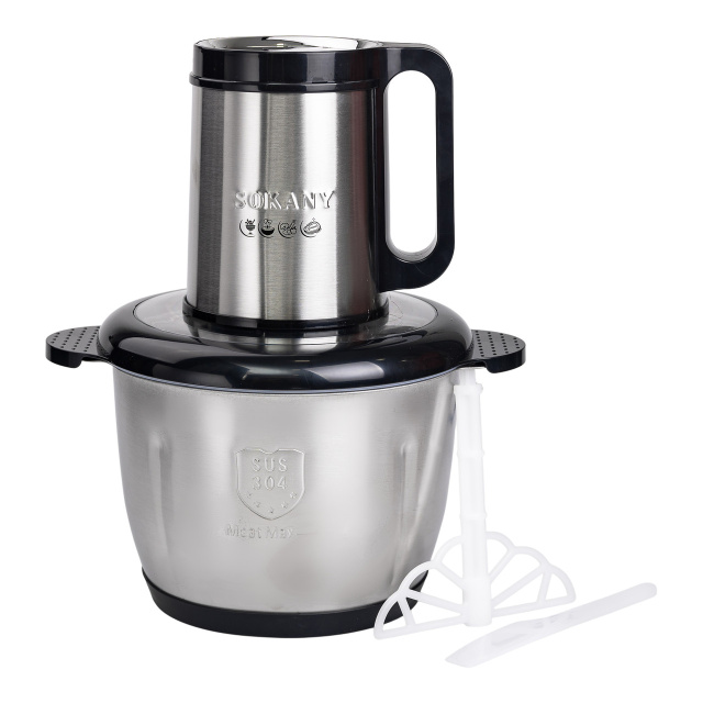 Чоппер-измельчитель Sokany - это современное и мощное устройство для быстрого и качественного измельчения ингредиентов. Благодаря мощности 800 Вт и 4 острым ножам из нержавеющей стали, он справляется даже с самыми твердыми продуктами, сохраняя их текстуру и свежесть. Большая чаша объемом 3 литра позволяет обрабатывать значительное количество ингредиентов за один раз, что делает этот чоппер идеальным для больших семей или приготовления праздничных блюд. Основные характеристики чоппера Sokany SK-06026 размер 25х19х29 см; мощность 800 Вт; объем чаши 2,5 литра; количество лезвий - 4 штуки; материал лезвий - нержавеющая сталь; материал чаши - нержавеющая сталь. Модель измельчителя SK-06026 отличается стильным дизайном и сенсорным управлением, что обеспечивает удобство и простоту использования. Корпус, изготовленный из комбинации нержавеющей стали и пластика, гарантирует долговечность и надежность. Этот чоппер измельчитель легко чистить благодаря съемным элементам, которые можно мыть вручную или в посудомоечной машине.