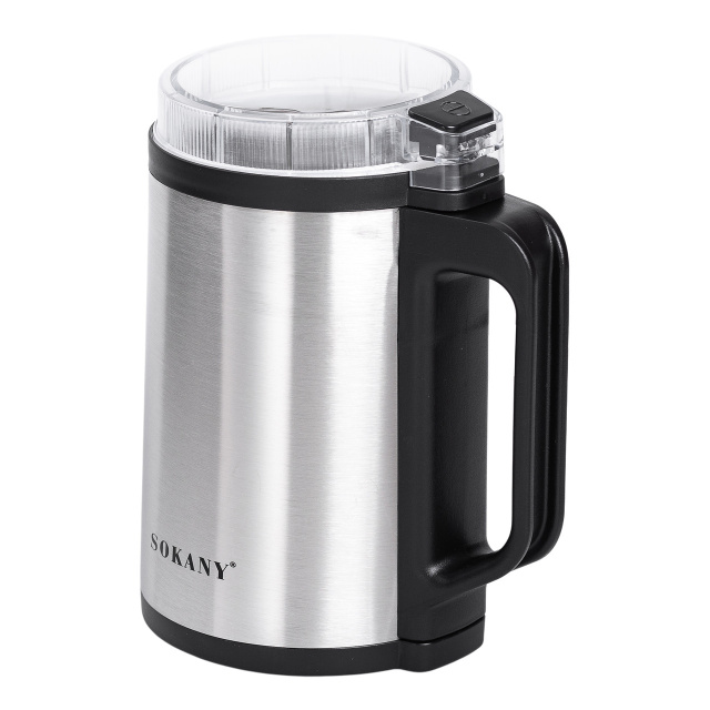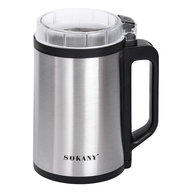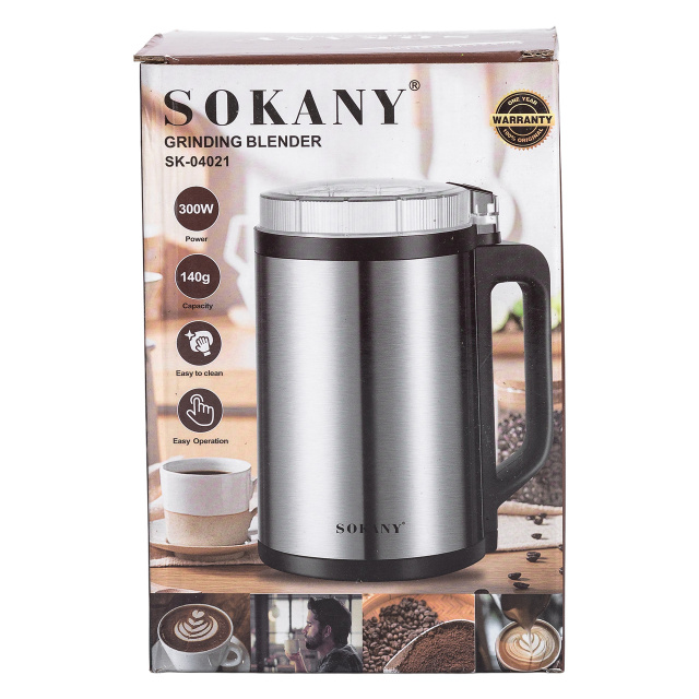 Электрическая кофемолка Sokany SK-04021 – это мощное и надежное устройство для приготовления свежего молотого кофе. Корпус кофемолки изготовлен из высококачественных материалов – нержавеющей стали и пластика, что обеспечивает долговечность и стойкость к износу. Энергоэффективность класса D позволяет снизить потребление электроэнергии без потери мощности. Основные характеристики кофемолки SK-04021 высота 18.5 см; диаметр 10 см; мощность 300 Вт; емкость чаши для зерен 140 г; материал - нержавеющая сталь/пластик. Благодаря мощности 300 Вт и конструкции с четырьмя лезвиями она обеспечивает быстрое и эффективное измельчение кофейных зерен до нужной степени. Это идеальный вариант для тех, кто хочет получить насыщенный вкус и аромат кофе, гарантируя максимальный выход энергии из каждого зерна. Кофемолка имеет объем 140 г, что позволяет молоть достаточно кофе для нескольких порций. Кофемолка Sokany SK-04021 – это надежное устройство для приготовления вкусного кофе с минимумом усилий, что обеспечивает долговечность и высокую эффективность при каждом использовании.
